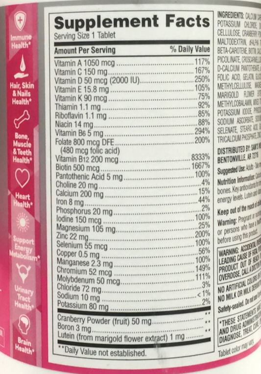 50+ 멤버스마크 어드밴스드 우먼 멀티 275정 *21종 비타민/미네랄+루테인/콜린/크랜베리*