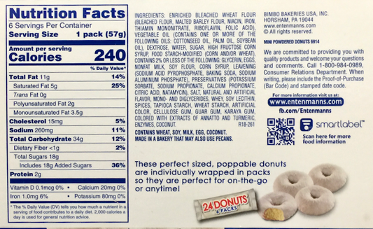 엔텐만 Entenmann's 미니 파우더드 도넛 6팩 (342g)