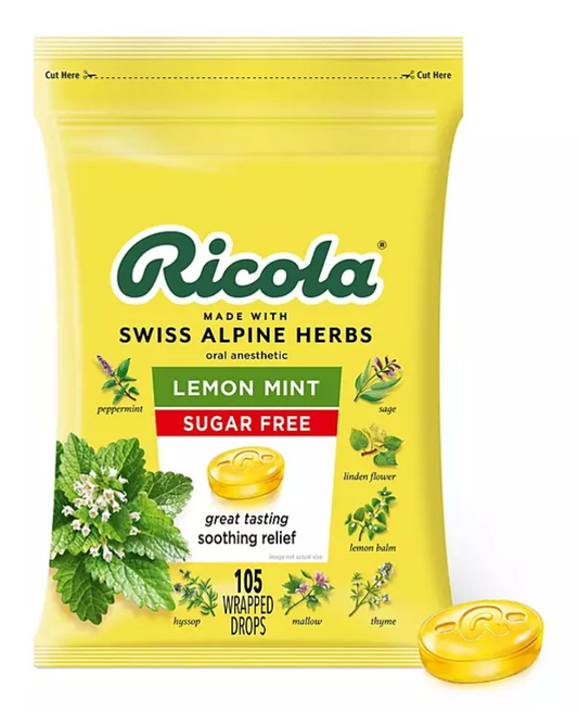 6+ 리콜라 Ricola 슈가/GMO-프리 레몬 민트 인후통 드롭 105pc 2개 (210pc)