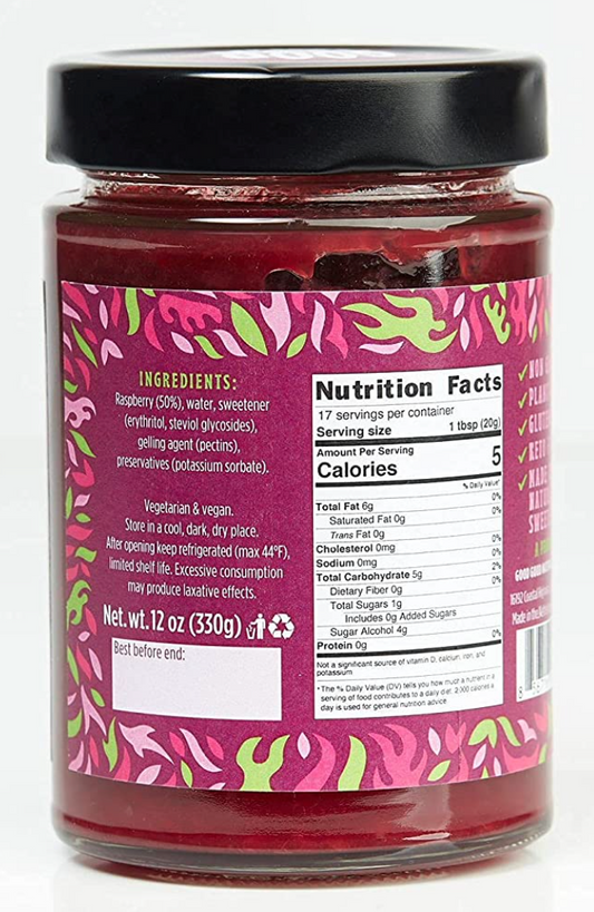 굿굿 Good Good Non-GMO 슈가/글루텐-프리 5칼로리 라즈베리잼 330g