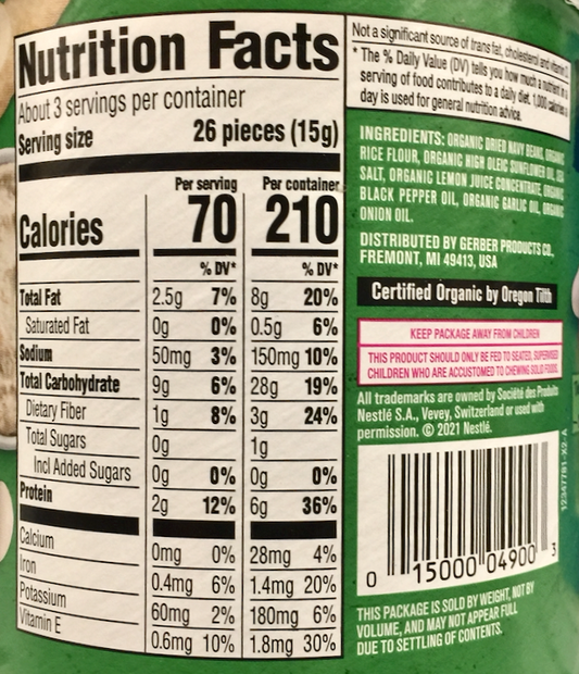 네슬레 Nestle 거버 유기농/Non-GMO 릴크런치 화이트 빈 후무스 퍼프 45g