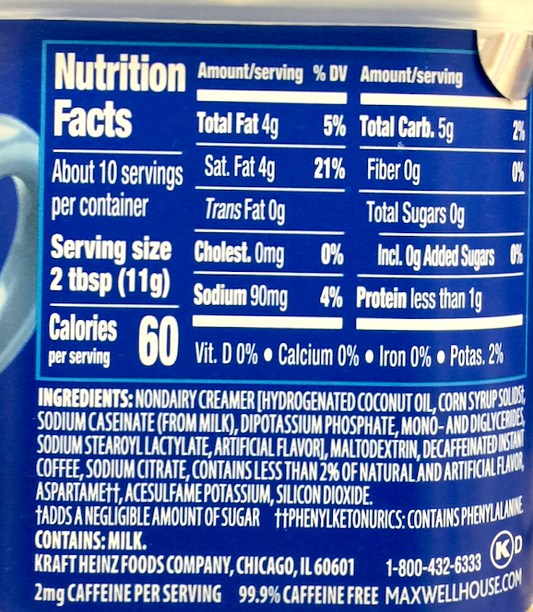 맥스웰 카페 슈가-프리 프렌치 바닐라 디카페인 커피 믹스 239g
