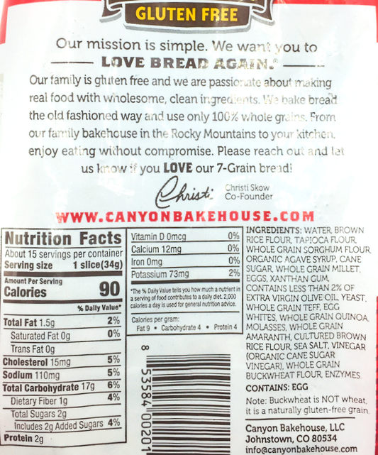 캐년베이크하우스 Canyon Bakehouse Non-GMO 글루텐-프리 7곡 식빵 510g