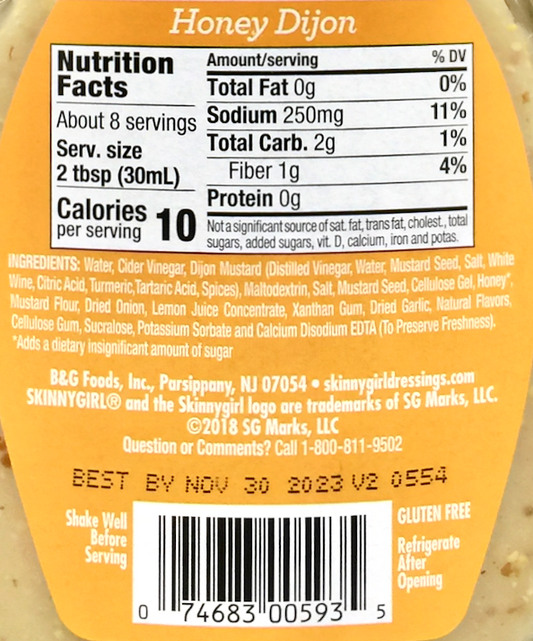 스키니걸 Skinnygirl 슈가/글루텐-프리 무지방 10칼로리 허니 디종 드레싱 237ml