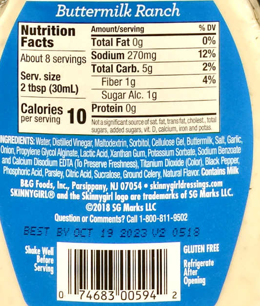 스키니걸 Skinnygirl 슈가/글루텐-프리 무지방 10칼로리 버터밀크 랜치 드레싱 237ml