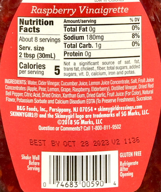 스키니걸 Skinnygirl 슈가/글루텐-프리 무지방 5칼로리 라즈베리 비네그레트 드레싱 237ml