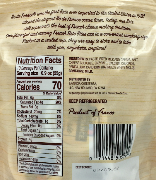 이레드프랑스 Ile de France rBST-프리 프렌치 브리치즈 바이트 25g 10pc (250g)