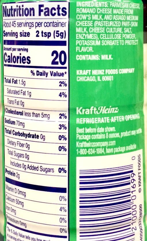 크래프트 Kraft 글루텐-프리 쓰리 블렌드 치즈 (파마산•페코리노•아시아고) 블렌드 226g