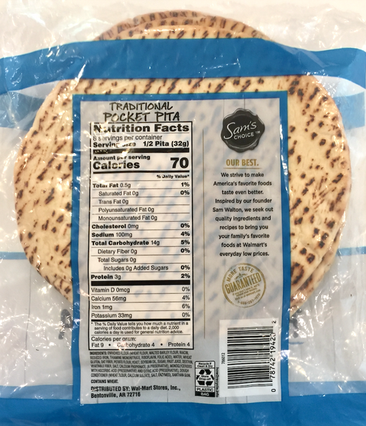 샘스초이스 Sam's Choice 화이트 포켓 피타 플랫브레드 4pc (256g)