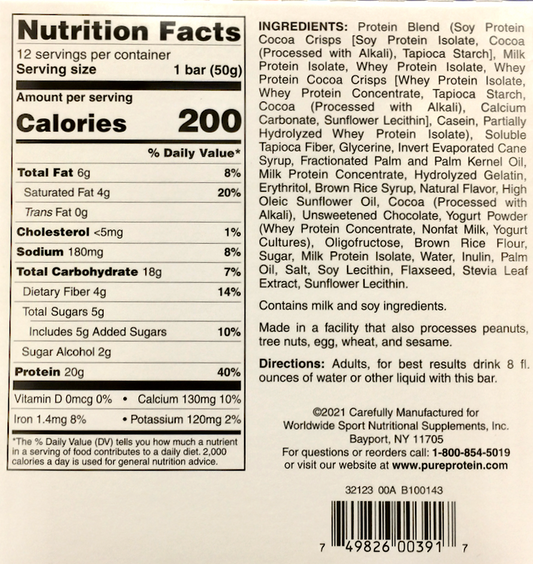 퓨어프로틴 Pure Protein Non-GMO 글루텐-프리 쿠키 & 크림 단백질바 50g 12ct (600g) *단백질 20g*