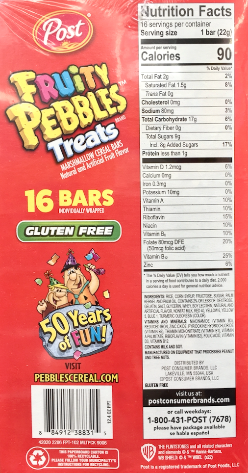 포스트 Post 글루텐-프리 후루티 페블즈 시리얼 바 16개 (352g)