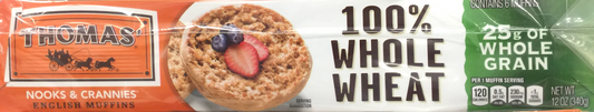 토마스 Thomas 100% 홀휘트 (통밀) 잉글리시 머핀 6pc (340g)