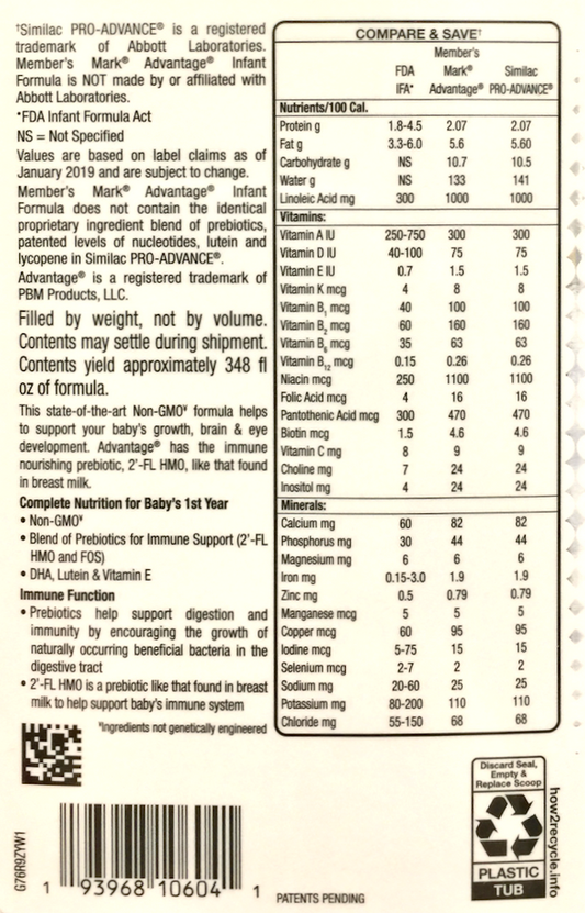 멤버스마크 Non-GMO 어드밴티지 프리미엄 분유 1.36kg