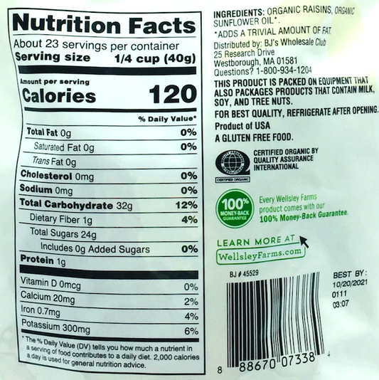 웰슬리팜 유기농 슈가/방부제/황산-프리 건포도 907g