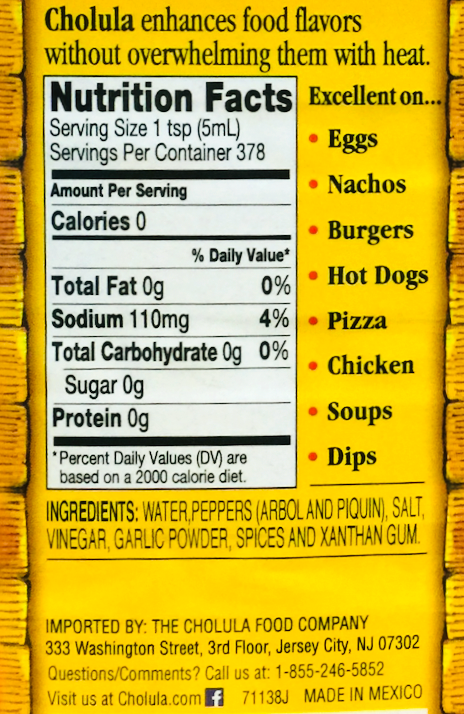 촐룰라 Cholula 슈가/글루텐-프리 0칼로리 오리지널 핫소스 1.89L 🌶