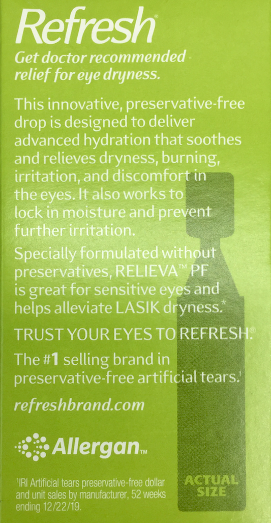 리프레시 Refresh 릴리바 PF 방부제-프리 민감한눈 드롭코팅 일회용 인공눈물 30pc