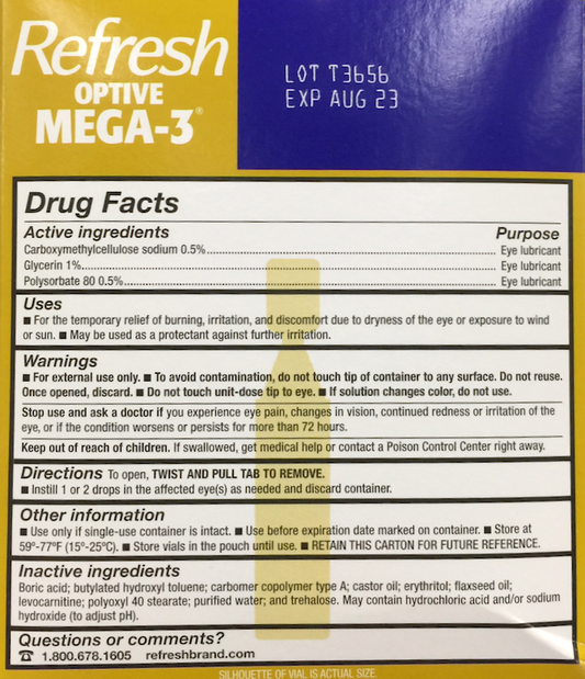 리프레시 Refresh 옵티브 메가쓰리 방부제-프리 일회용 인공눈물 60pc