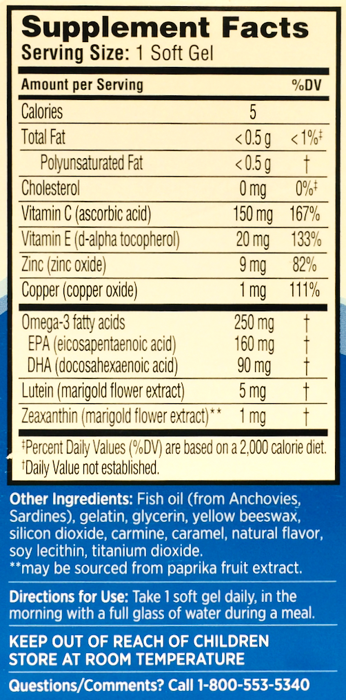 바슈롬 Bausch Lomb 오큐바이트 블루라이트 루테인 25mg + 제아잔틴 30 액정