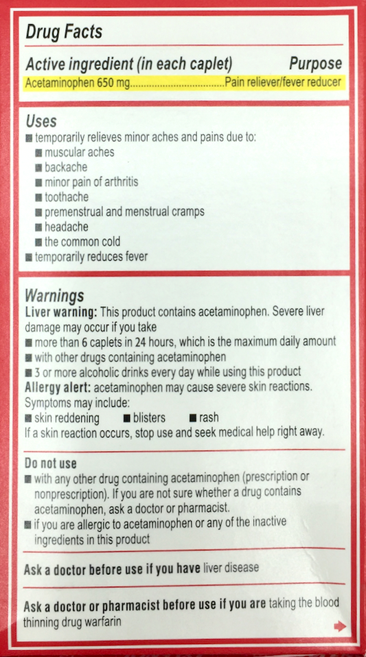 타이레놀 아세트아미노펜 650mg 근육통 8시간 서방형 100정