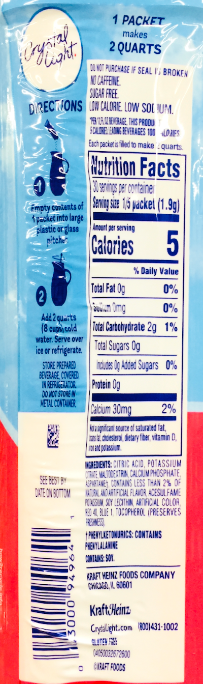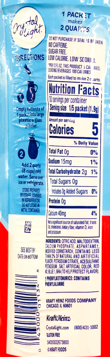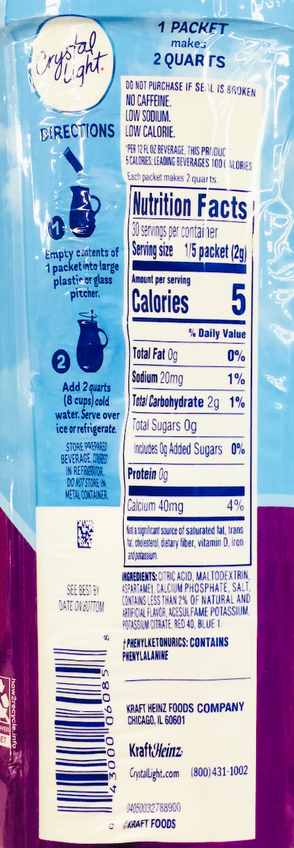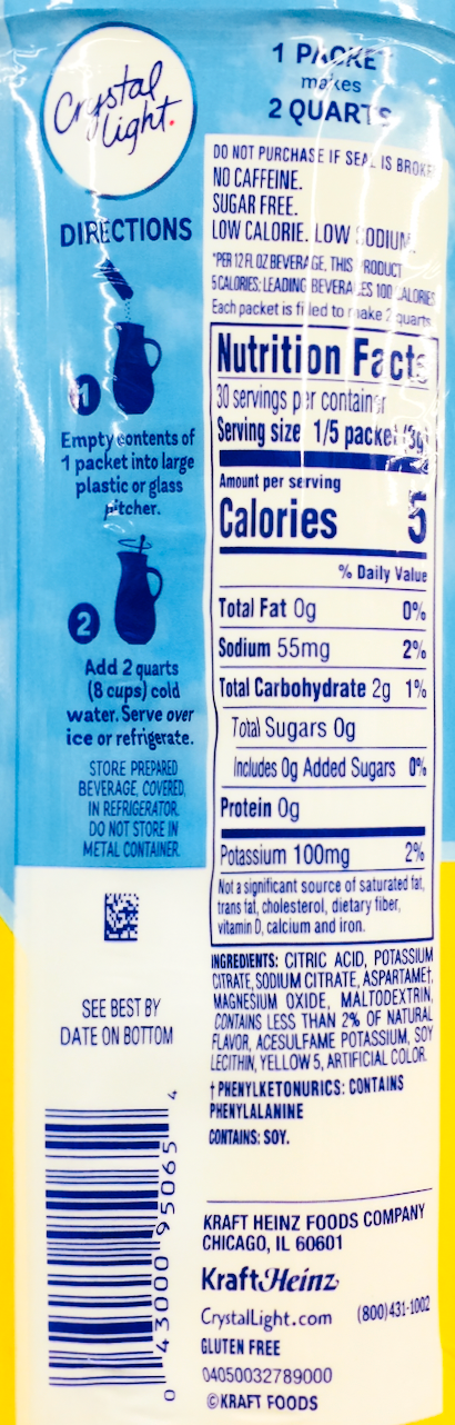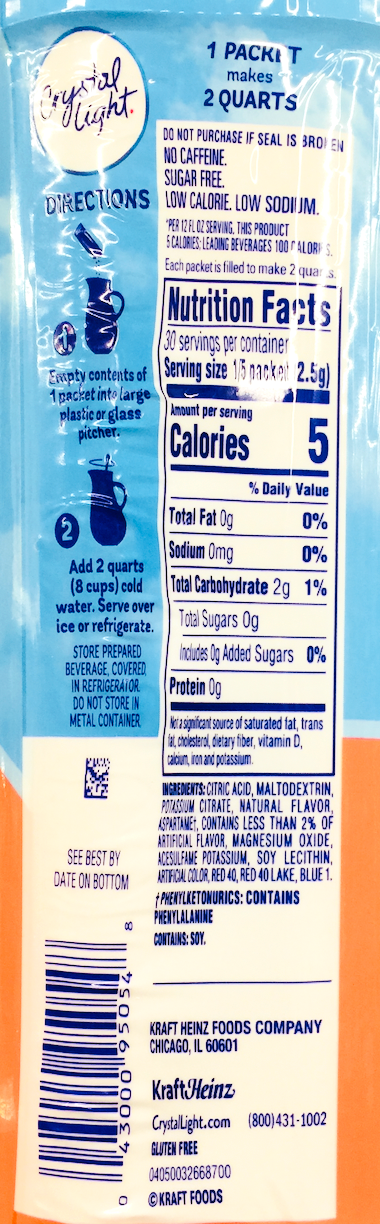 크래프트 Kraft 슈가-프리 크리스탈라이트 과일 펀치 믹스 1.89L 6ct (57g)