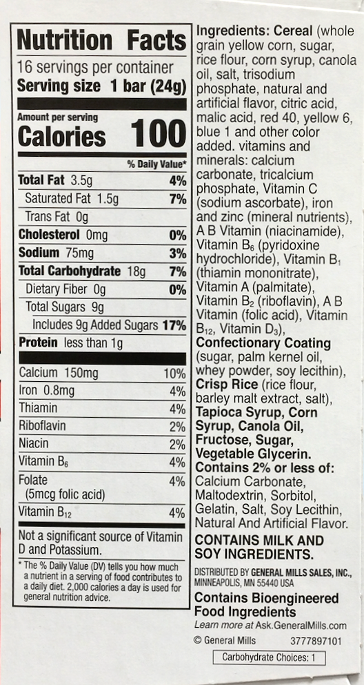 제너럴밀즈 General Mills 트릭스 시리얼 바 16ct (385g)