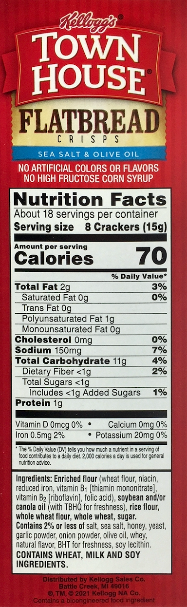 켈로그 Kellogg's 타운하우스 플랫 브래드 시솔트 & 올리브오일 크리스프 269g