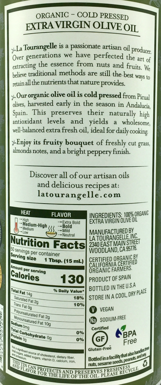 라투랑젤 La Tourangelle 유기농/Non-GMO 엑스트라 버진 올리브 오일 Tin 750ml