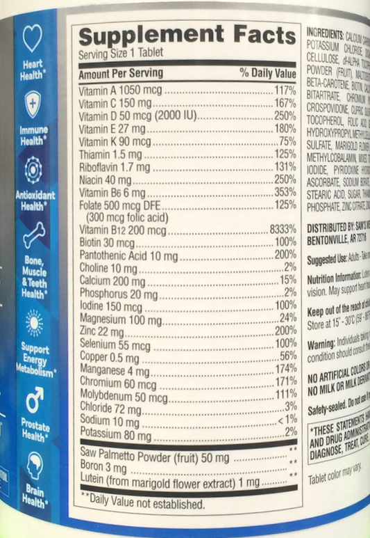 50+ 멤버스마크 맨 멀티 비타민 275정 *21종 비타민/미네랄 +루테인/콜린/소팔메토*