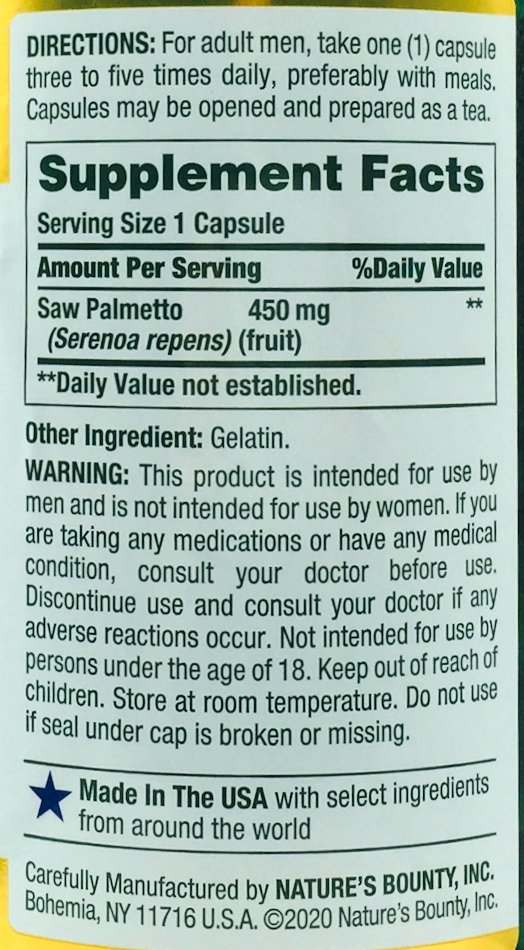 네이처스바운티 Non-GMO 쏘팔메토 450mg 100정