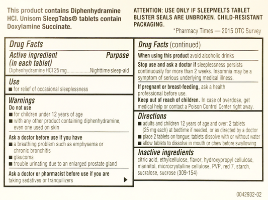 12+ 사노피 유니솜 독시라민 석신산염 25mg 슬립탭 수면유도 48정