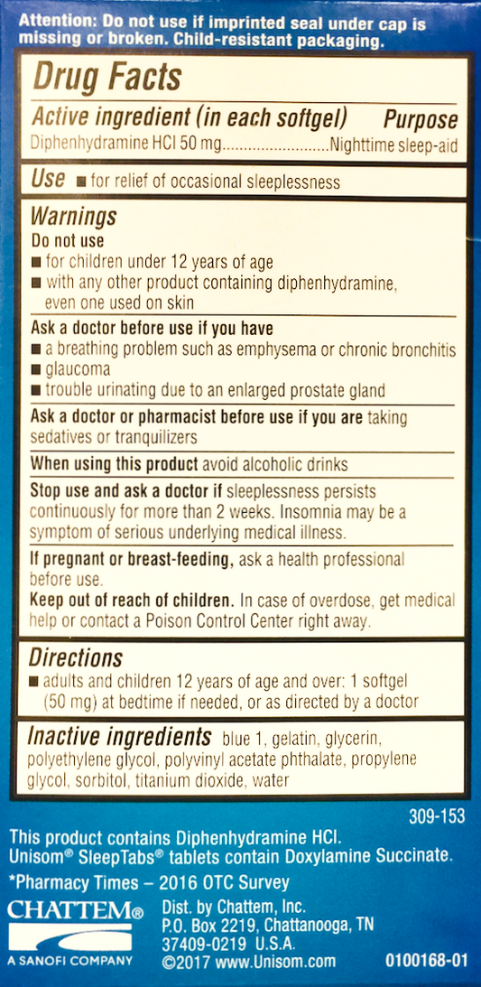 12+ 사노피 유니솜 디펜하이드라민 50mg 슬립젤 60정