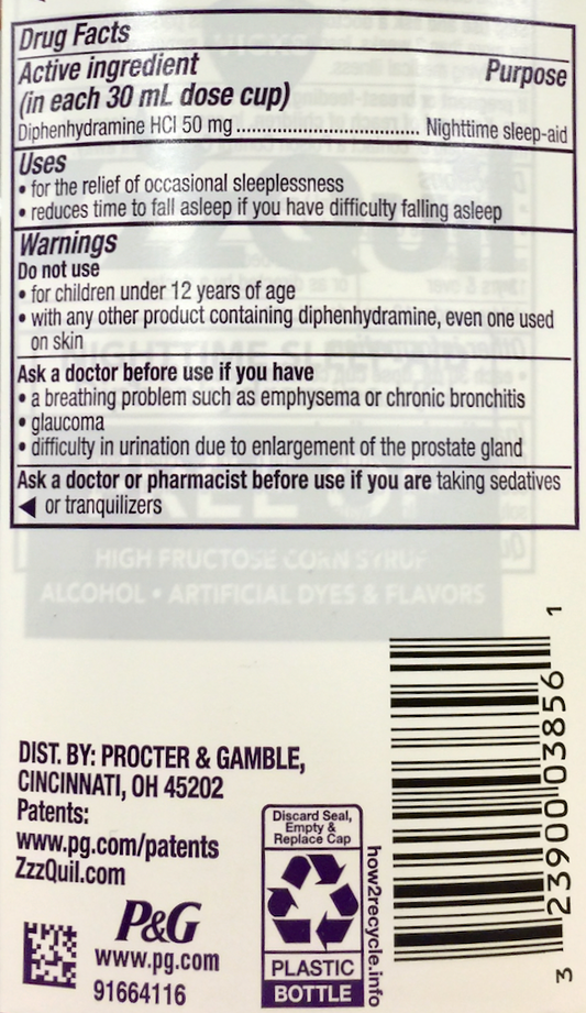 P&G 지퀼 디펜하이드라민 50mg 수면유도 무색소/무알콜 시럽 354ml