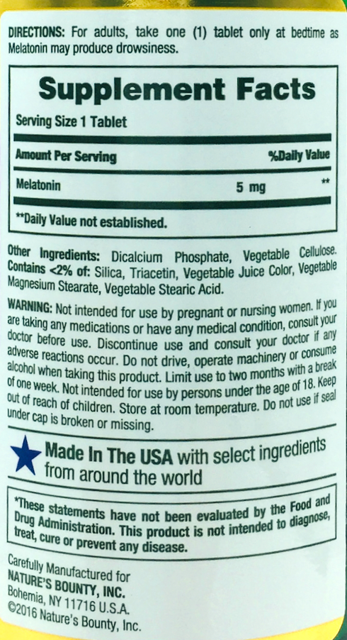 네이처스바운티 Non-GMO 약물-프리 멜라토닌 5mg 속방형 60 액정 2병 (120정)