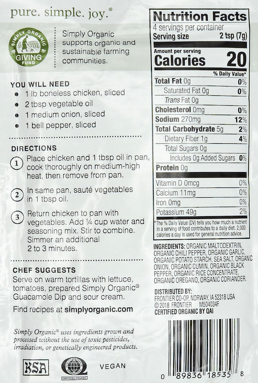 심플리 오가닉 Simply Organic 유기농 화지타 시즈닝 믹스 28g 12개