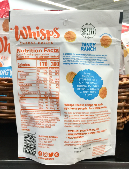 휘스프 Whisps 탠지 랜치 치즈 크리스프 55g 2팩 (110g) *케토친화*
