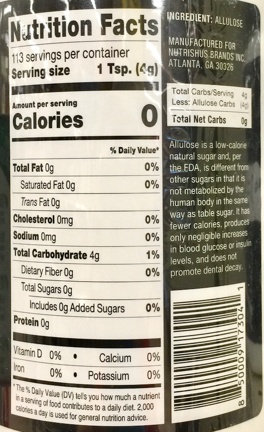 알엑스슈가 RxSugar Non-GMO 0칼로리/무혈당 알룰로즈 당뇨•케토 감미료 캐니스터 453g
