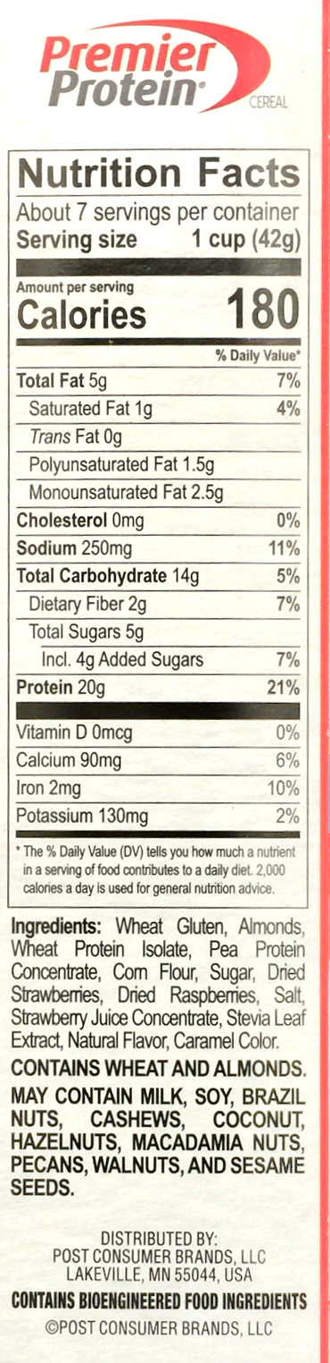 포스트 Post 프리미어 프로틴 무설탕 믹스드 베리 아몬드 단백질 시리얼 311g *단백질 20g*
