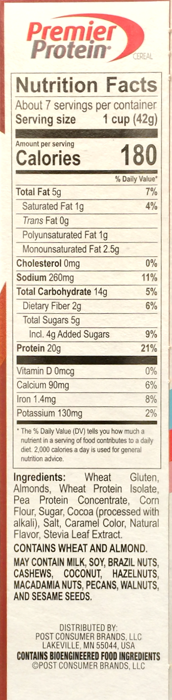 포스트 Post 퓨어프로틴 무설탕 초콜렛 아몬드 단백질 시리얼 311g *단백질 20g*