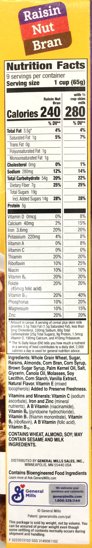 제너럴밀즈 General Mills 레이즌 너트 브랜 (건포도 아몬드 밀겨) 시리얼 589g
