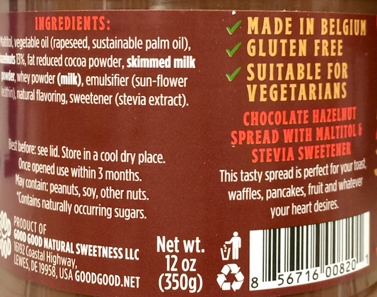 굿굿 Good Good 슈가/글루텐-프리 벨지안 초코 헤이즐넛 스프레드 350g