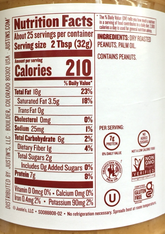 저스틴 Justin's Non-GMO 클래식 슈가/솔트-프리 땅콩 버터 794g