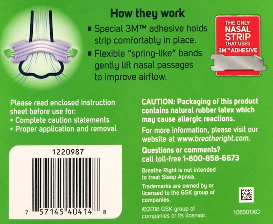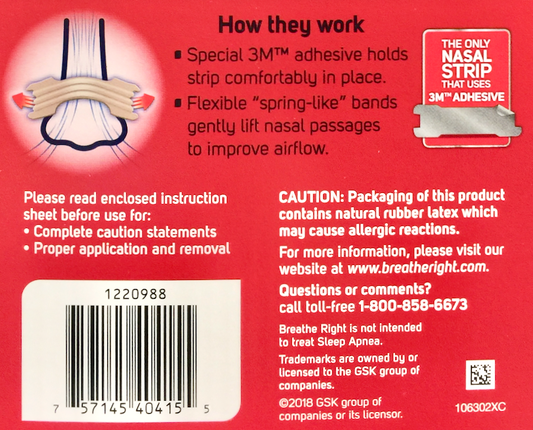 5+ 글락소스미스클라인 GSK 브리드라이트 엑스트라 스트랭쓰 약물-프리 코골이/코막힘 코밴드 Tan 44매