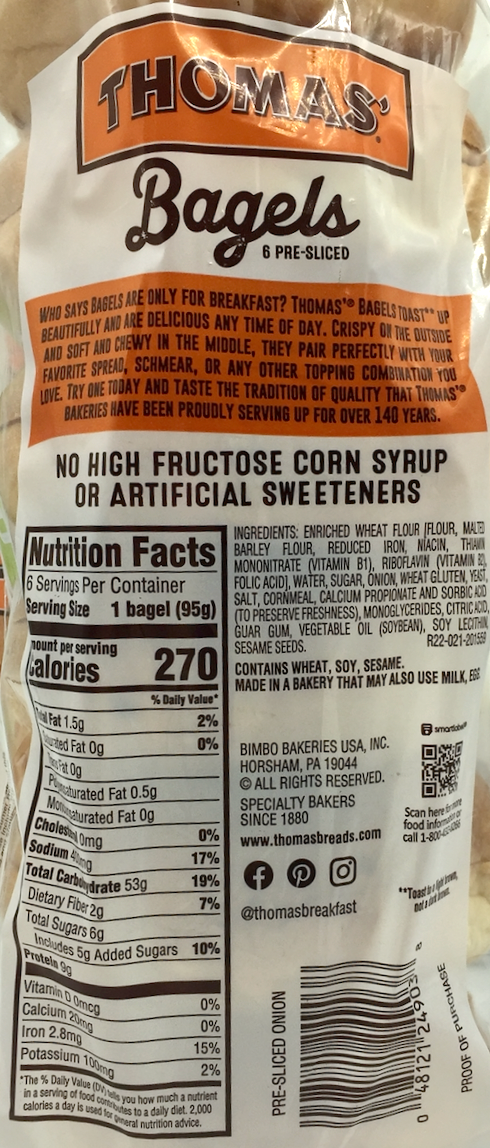 토마스 Thomas 어니언 (양파) 베이글 6pc (567g)