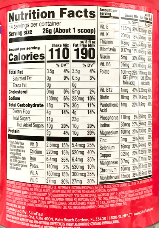 슬림패스트 Slimfast 하이프로틴 슈가/글루텐-프리 바닐라 크림 프로틴 쉐이크 312g *단백질 20g*