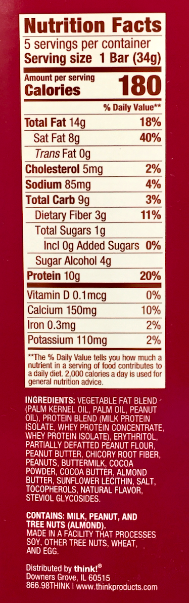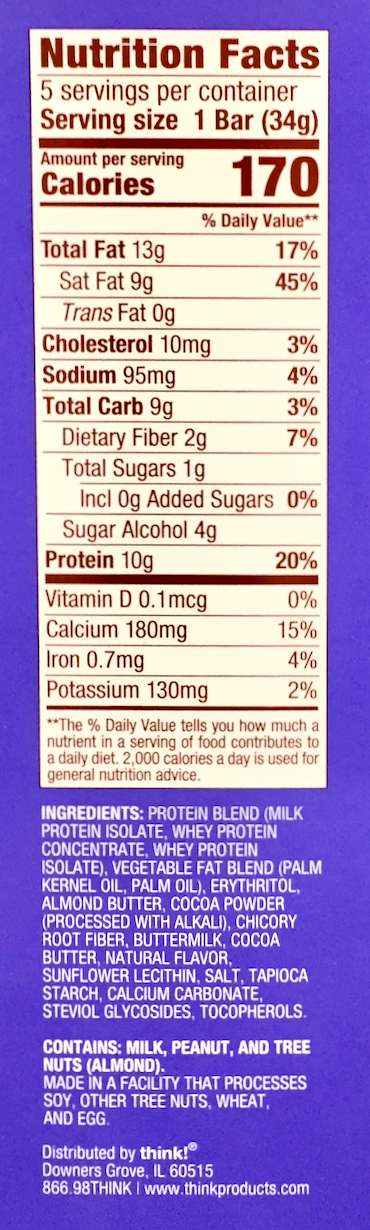 씽크 Think! 슈가/GMO-프리 초콜렛무스파이 케토 단백질바 40g 5ct (170g) *단백질 10g*