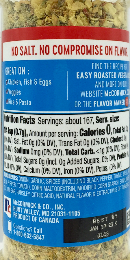 맥코믹 McCormick 슈가/글루텐-프리 무염 0칼로리 야채 시즈닝 117g