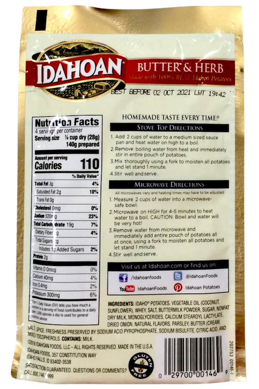아이다호안 Idahoan 글루텐-프리 버터 & 허브 매시드 포테이토 113g 2ct (226g)