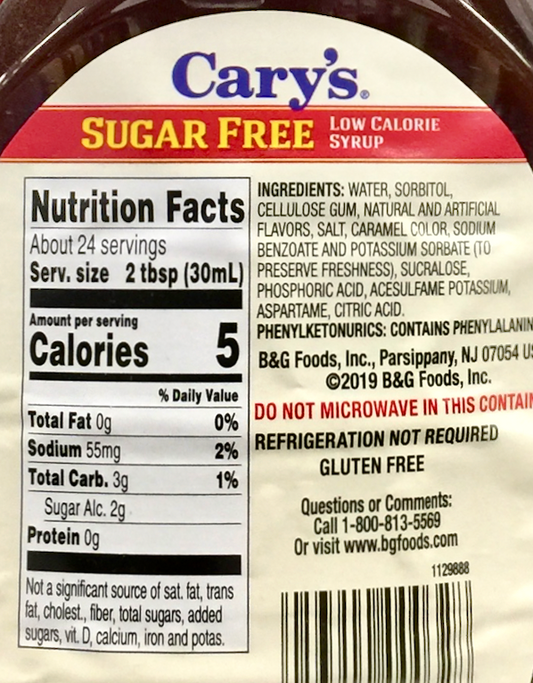캐리 Cary's 슈가/글루텐-프리 5칼로리 시럽 710ml *Since 1904*