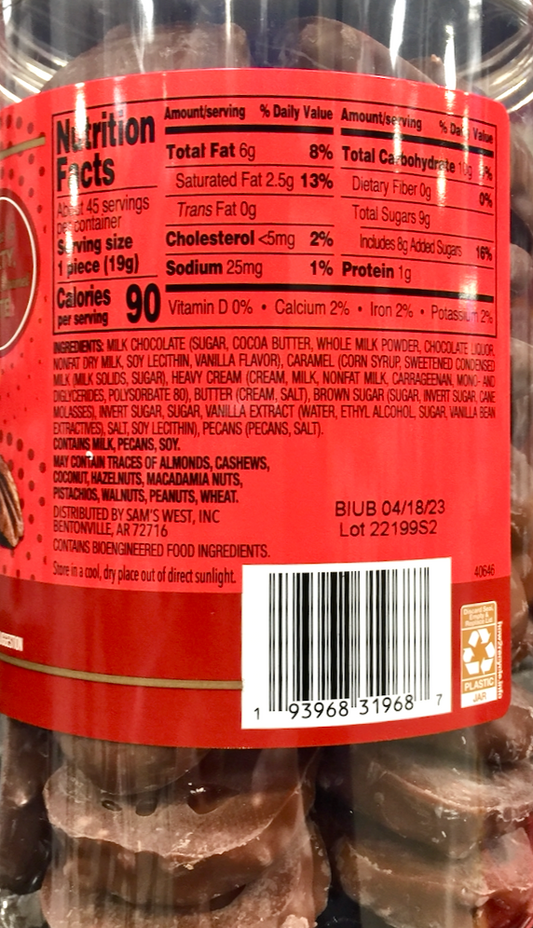 멤버스마크 밀크초콜렛 피칸 카라멜 클러스터 855g *100% 천연원료*