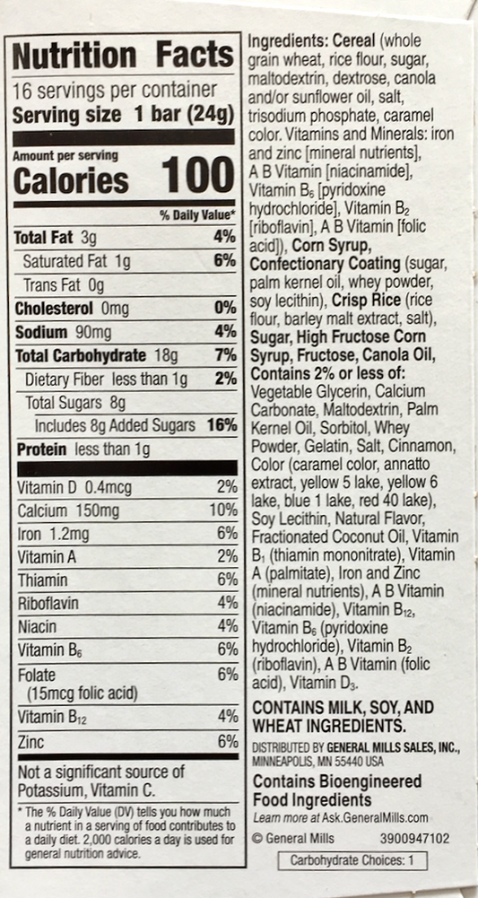 제너럴밀즈 General Mills 시나몬 토스트 크런치 시리얼 바 16ct (385g)